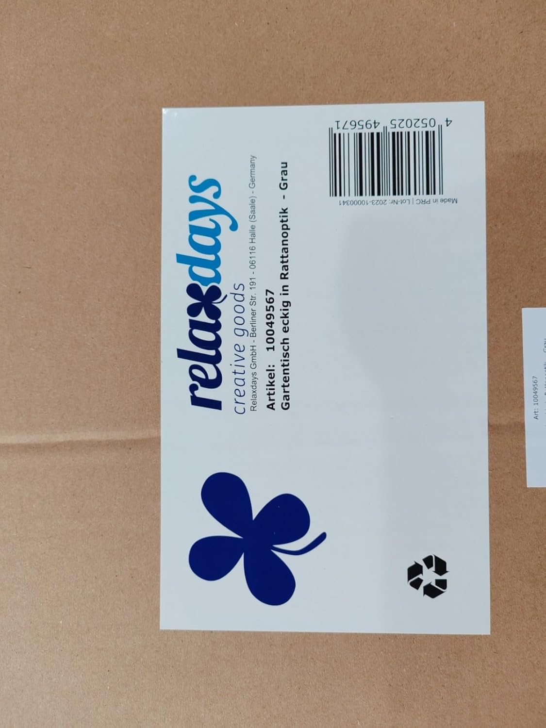 | Item Type Name | Relaxdays Folding garden table, HBD: 74 x 121.5 x 61 cm, rattan look, plastic, steel, weatherproof balcony table, grey |
