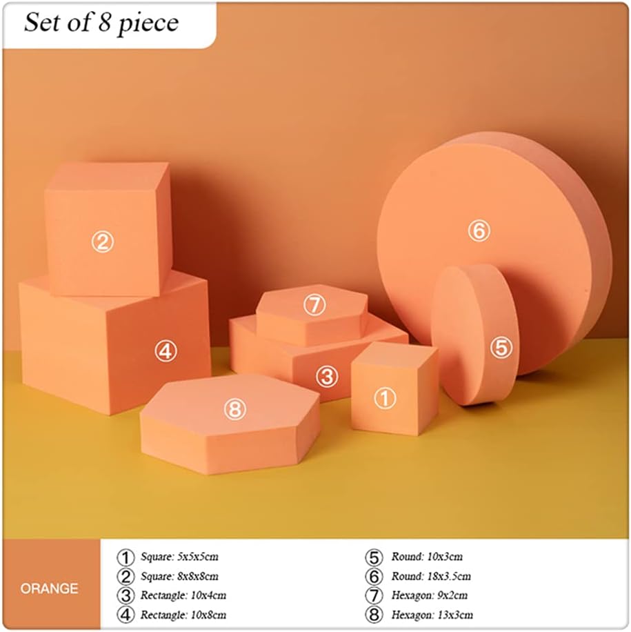 Design:Craft Foam Block.Product Photography Props Foam Photoshoot Prop Set for Product Display, Foam Props for Photoshoot.Having classic stereoscopic geometric shape design,looks very aesthetic and artistic. Feature: Light -weight and durable,waterproof ,easy to clear if dirty.Strong bearing capacity, not easy to sunken,excellently color uniformity. Application:Using foam block shapes as photo props creates visual intrest by adding varying height and depth to your photo set display,Builded the Scene effect of stereoscopic ,bring luxury and noble aura with your picture.Compatible with vinyl photography backdrops, rotating display stand and other photography accessories photo props. New Trending on Product Photography :This collection of light foam shapes are great for styling as photo props for skincare products, cosmetics & jewellery products.when you shooting photo share on instagram,YouTube,Twitter,Facebook,the foam photograyphy props will creative your photo amazing effect.