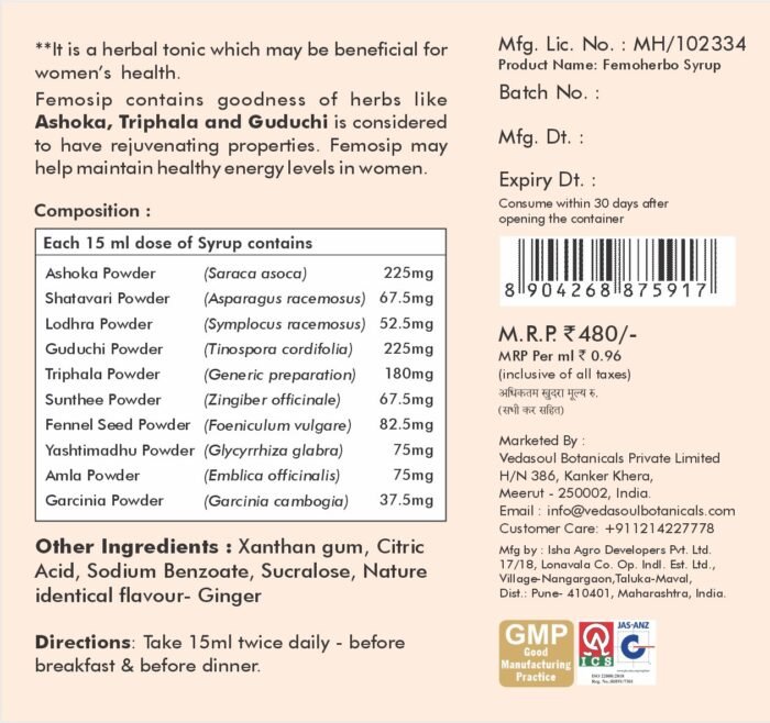 Regular use of Femosol Syrup can alleviate menstrual discomfort, balance hormones, and enhance overall vitality.